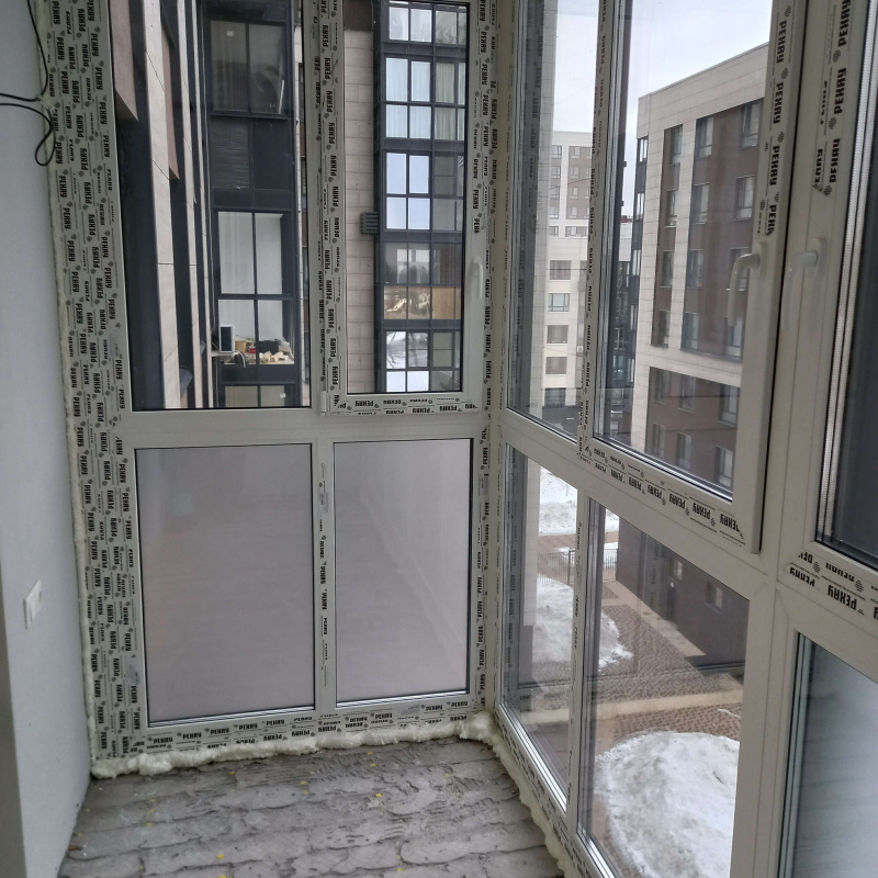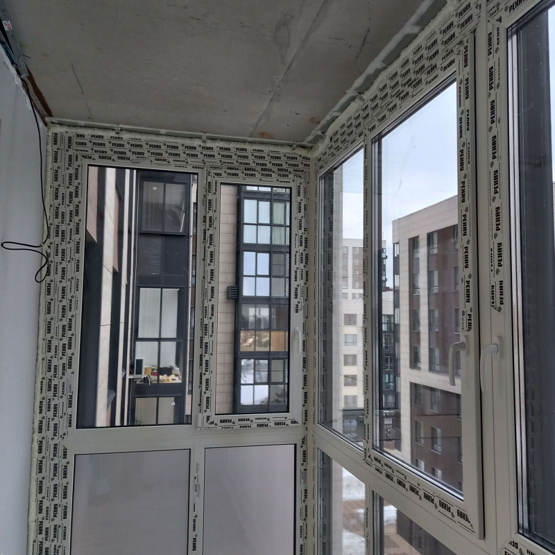 Выполнено: Французское остекление балкона в новостройке профилем REHAU Intelio 80, вывоз мусора.