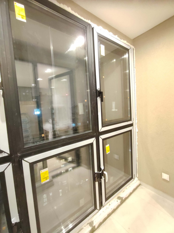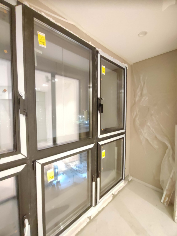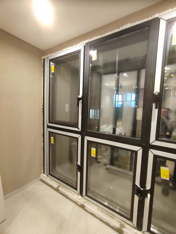 Выполнено: Панорамное остекление лоджии черным профилем REHAU Geneo, установка освещения, вывоз мусора.